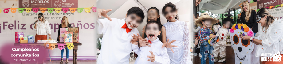 Creemos que celebrar es un derecho. Por ello, hemos trabajado con organizaciones como el Banco de Alimentos de Morelos para entregar disfraces y máscaras a niñas y niños en situaciones vulnerables, durante fechas especiales como Halloween y días de celebración comunitaria.